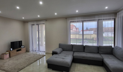 A vendégház 4 szobás. Ezek közül egy mozgáskorlátozott típusú, mely az igények kielégítésének megfelelően lett kialakítva. A házban 12 fő fér el. Biztosítani tudunk gyermekelhelyezéshez szükséges kellékeket, mint pl. babakád, kiságy, nyugágy, de ezek külön előre jelzés és megbeszélés alapján. A vendégházban egy nagyobb méretű nappali is található, melyben egy L alakú sarokkanapé foglalt helyet és ez által plussz két főnek biztosít esetleges szálláshelyet. A nappaliban található TV- melyet bárki kedve szerint használhat, illetve internet elérés is felármentesen biztosított.