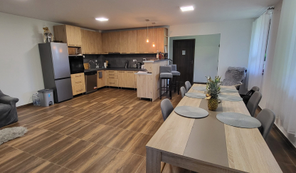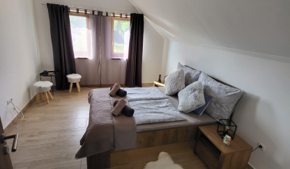Vendégházunkban három kényelmes szobával várjuk vendégeinket és tágas közös térrel. Az emeleten két hálószoba saját fürdőszobákkal, a harmadik szoba a földszinten helyezkedik el, és teljes körű akadálymentesítéssel rendelkezik, biztosítva a kényelmes hozzáférést minden vendégünk számára. Az otthon kellemes atmoszférájával és modern kialakításával ideális helyszín családi vagy baráti összejövetelekhez, ahol a kényelem és a funkcionalitás találkoznak.