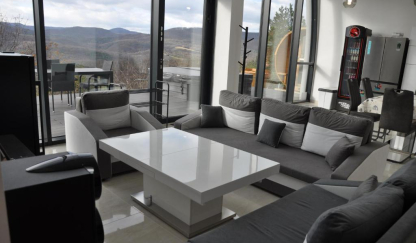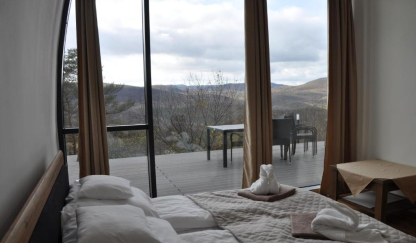 A szálláshely 3 db tágas szobával rendelkezik, melyek összesen 6 fő befogadására alkalmasak. Az épület szervesen kapcsolódik a kialakult domborzathoz, azzal egybeolvad, a nappali helységet lezáró hatalmas üvegfelület mégis modern megjelenést biztosít.