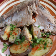 Sárban sült kárász parázsban sült burgonyával