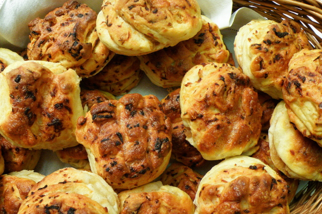 A töltelékből rudakat formázunk, és a palacsintákat megtöltjük vele. Ráhelyezzük a közepére, a tészta két oldalát ráhajtjuk, és feltekerjük.