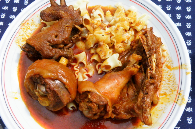 Hozzávalók: (10 főre) 2 kg paprika, 45 dkg paradicsom, 50 dkg vöröshagyma, 2 gerezd fokhagyma, 20 dkg füstölt szalonna, 1 kg csirkemáj, 1 kávéskanál őrölt feketebors, 1 teáskanál őrölt kömény, 1 teáskanál majoránna, só, 2 teáskanál őrölt paprika, 2 evőkanál sertészsír.