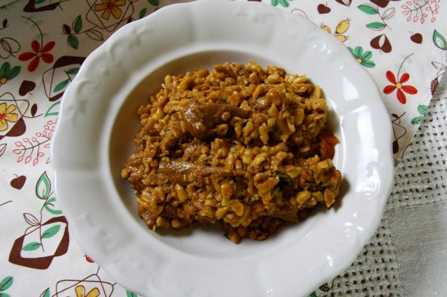 Amikor minden elkészült, a húst a tarhonyával összekeverjük, és már tálalhatjuk is.
