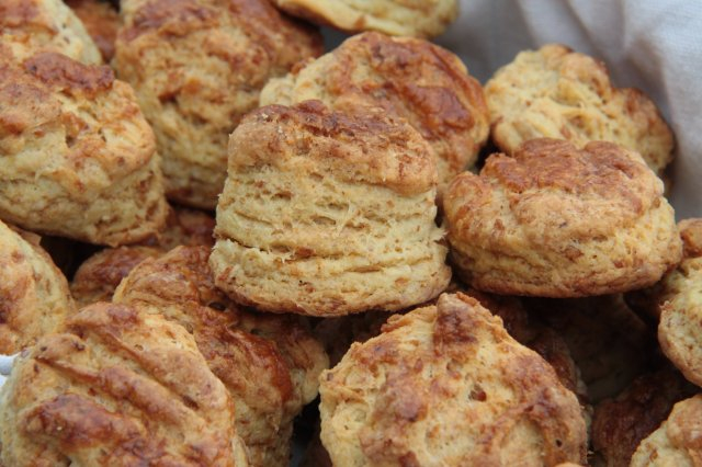 Az utolsó pihentetés után kisodorjuk, de ekkor már kétujjnyi vastagra. Késsel berácsozzuk, lisztezett szaggatóval pogácsákat szúrunk ki belőle, ezeket kizsírozott tepsibe sorakoztatjuk. Sós, felvert tojással átkenjük a tetejét, és előmelegített kemencében, vagy sütőben kisütjük.