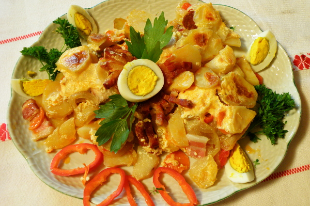 Hozzávalók: 1 kg kukoricakása, 1 kg savanyú káposzta levél, 1 kg füstölt sonka, 30 dkg füstölt szalonna, 10 dkg zsír, 1 gerezd fokhagyma, 3 vöröshagyma, 2 teáskanál só, 1 teáskanál őrölt feketebors, 1 teáskanál őrölt kömény, 3 teáskanál fűszerpaprika, 50 dkg vágott savanyú káposzta.