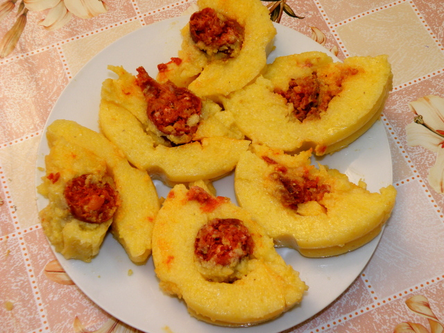 Hozzávalók: 40 dkg kukoricakása, 2 teáskanál só, 2 evőkanál sertészsír, 30 dkg füstölt kolbász, 3 evőkanál étolaj.