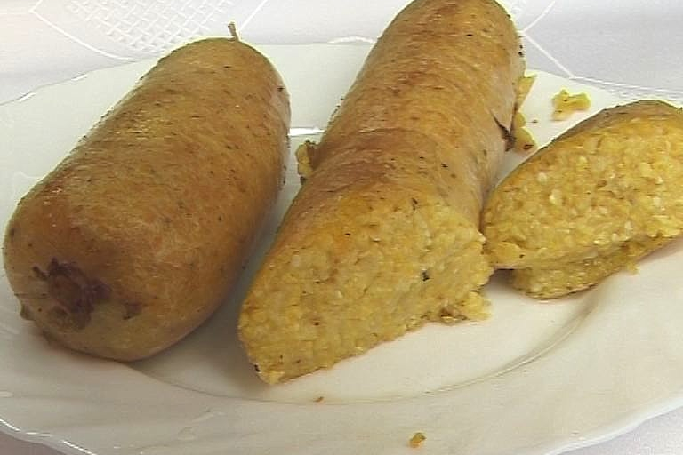 A vöröshagymákat megtisztítjuk, felkockázzuk, és a zsírban megpirítjuk. Belekeverjük a kásába. Fűszerezzük borssal, majoránnával, és alaposan összedolgozzuk. Megtisztított vastagbélbe töltjük kézzel, vagy fakanál segítségével. A végeit gondosan bekötözzük, és abalében 10 percig főzzük. Kivesszük, és zsírozott tepsiben, sütőben szép pirosra sütjük.