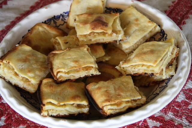 Ezután gyúródeszkán hat egyenlő részre szétválasztjuk, és kicipózzuk. Mindegyiket kisebb palacsinta nagyságúra kisodorjuk, és olvasztott zsírral átkenjük a tetejét. Három ilyen lapot egymás tetejére helyezünk, így lesz a munka végére két, háromemeletes rétes alapunk, amit újabb 15 percig pihentetünk.
