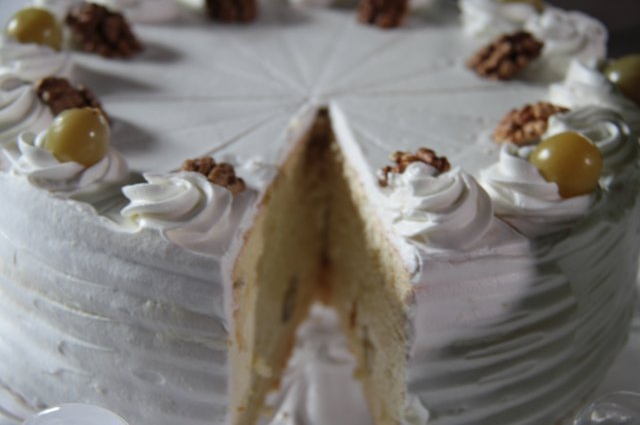 Közben elkészítjük a tölteléket. A tojások fehérjét kemény habbá verjük, apránként hozzákeverjük a darált diót, a porcukrot, és a rumaromát.