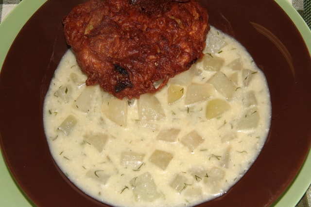 Hozzávalók: 80 dkg karalábé, 1 kis fej vöröshagyma, 3 dkg vaj, 1 teáskanál méz, só, 1 kis csokor kapor, 2 dl tejszín, 1 púpos evőkanál liszt, 1 kávéskanál őrölt feketebors. A tócsihoz: 1 kg krumpli, 1 kávéskanál őrölt feketebors, 1 teáskanál só, 1 tojás, 1 vöröshagyma, 6 gerezd fokhagyma, 5 púpos evőkanál liszt, 0,5 dl tej, a sütéshez 2 dl étolaj.