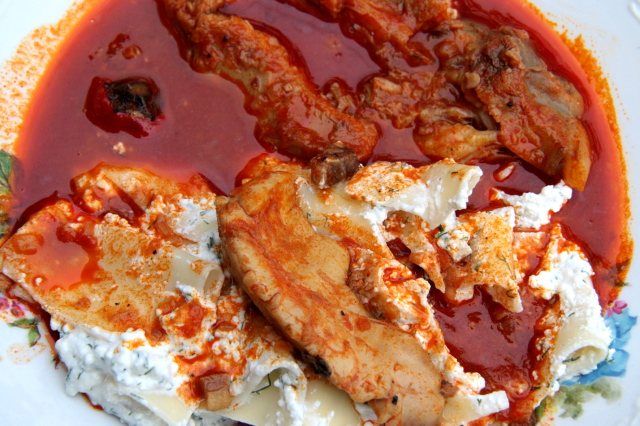 A körethez a tésztát enyhén sós, forró vízben kifőzzük, majd leszűrjük. A kaprot és snidlinget apróra vágjuk. A túrót összetörjük, elkeverjük benne a tejfölt, a sót, a kaprot, a snidlinget, az apró kockákra szelt fokhagymát, és ízlés szerint borsozzuk. Ezt a tésztával alaposan összekeverjük, tetejét szalonnapörccel megszórjuk, és a pörkölthöz kínáljuk.