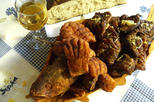 Hozzávalók: (4 személyre) az alapléhez 1 kg vegyes balatoni hal (busa, ponty, harcsa), 1 dl étolaj, 5 dkg kolozsvári szalonna, 2 vöröshagyma, 2 sárgarépa, 2 petrezselyemgyökér, 1 csípős paprika, 1 teáskanál só, 2 teáskanál paradicsompüré, 4 evőkanál őrölt paprika. 40 dkg pontyszelet, só, 1-2 evőkanál citromlé.