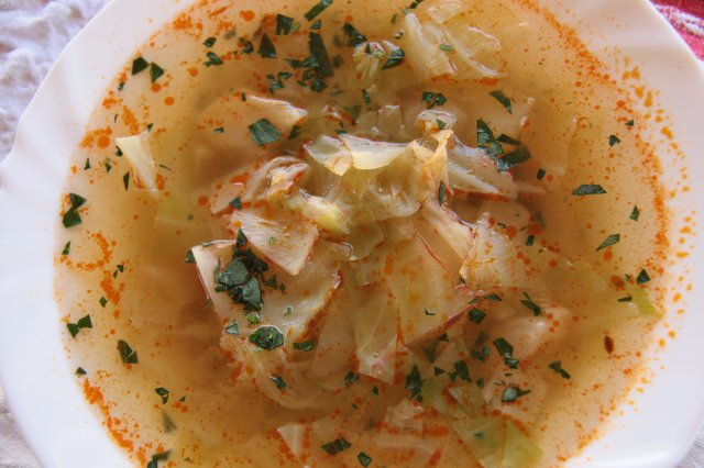 Amikor a káposzta roppanósra megfőtt a levesben, a zeller zöldet kivesszük, és a rántással összeforraljuk az ételt. Ízlés szerint sózzuk.