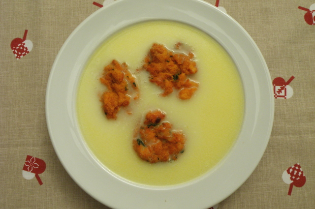 A céklát megtisztítjuk, tökgyalun lereszeljük. A krumplit megpucoljuk, kockákra vágjuk. A sárgarépát és petrezselymet is felaprózzuk.