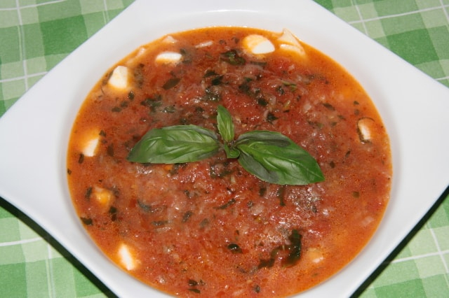 Hozzávalók: 1 kg paradicsom, 5 dl zöldség alaplé (vagy húslé), 1 vöröshagyma, 0,5 dl étolaj, 1 kávéskanál só, 1 teáskanál őrölt feketebors, 2 teáskanál cukor, 1 csokor petrezselyemzöld, pár levél bazsalikom, 20 dkg gomolya sajt. A tésztához: 2 tojás, 30 dkg liszt.