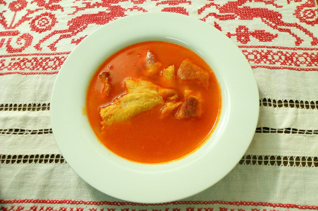 A füstölt szalonnát felkockázzuk, és zsíron kisütjük. Közben a zöldségeket megtisztítjuk, és felaprítjuk. A sárgarépát és petrezselymet karikákra, a zellergumót, vöröshagymát és krumplit kockákra vágjuk.