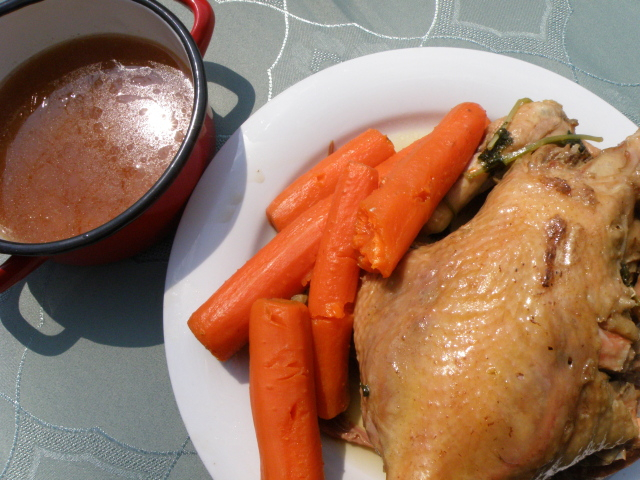 Lassú tűzön készre főzzük. Tálalásnál külön tányérra szedjük a húst és a zöldségeket, a levest pedig kifőzött lúdgége tésztával tálaljuk.