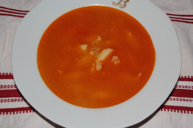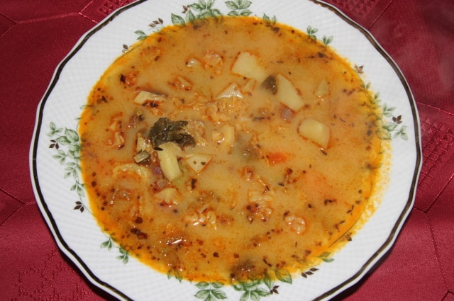 A burgonyát meghámozzuk, vékonyra felkockázzuk, és a levesbe borítjuk. Kevés sóval ízesítjük, és készre főzzük.