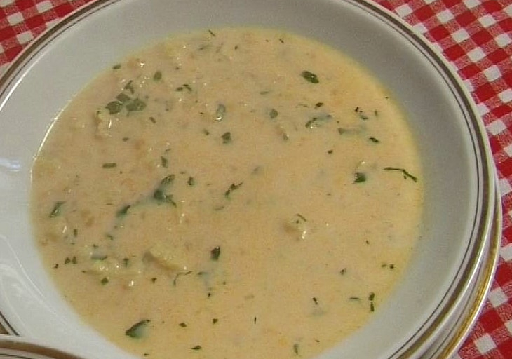 A megpirult tésztával együtt összesütjük a hagymát, majd kis idő múlva a petrezselymet is hozzáadjuk. Felengedjük egy liter tejjel, és ugyanannyi vízzel. Sóval, fűszerpaprikával, és őrölt borssal ízesítjük, összeforraljuk, és tejföllel tálaljuk.
