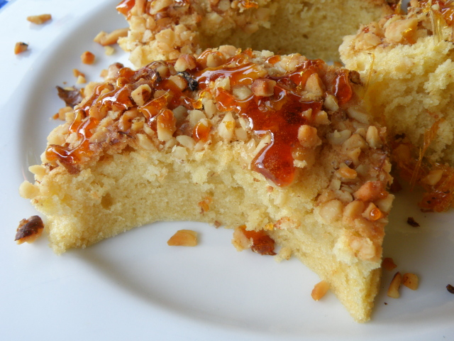 Hozzávalók: 6 tojás, 30 dkg kristálycukor, 30 dkg liszt, 1 kávéskanál sütőpor, 30 dkg margarin. A tepsi kikenéséhez vaj, liszt. A tetejére 20 dkg dió. A karamellhez 10 dkg cukor.