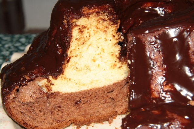 Hozzávalók: 1,2 kg liszt, 10 dkg élesztő, 2 evőkanál kakaó, 2 csomag vaníliás cukor, 20 dkg olvasztott vaj, 6 tojás sárgája, 8 evőkanál kristálycukor, 6 dl tej, 10 dkg mazsola. A sütőformához étolaj, zsemlemorzsa. A mázhoz: 20 dkg csokoládé, 1 dl tej.