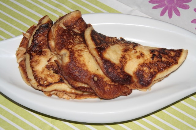 A tojásokat két tálba szétválasztjuk. A fehérjéket egy teáskanálnyi cukorral keményre verjük. A sárgákhoz csipetnyi sót, egy teáskanál cukrot, és kevés tejet keverünk. Beleborítjuk a lisztet, és apránként simára kidolgozzuk annyi tejjel, hogy sűrű tészta alapot kapjunk. Ebbe óvatosan, kanalanként tesszük a fehérjehabot. Lassú mozdulatokkal habosra keverjük, és olajjal locsolt, forró palacsintasütőben, a szokásos módon kisütjük.