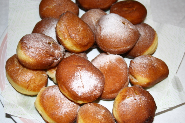 Hozzávalók: 50 dkg liszt, csipetnyi só, 5 tojás sárgája, 10 dkg vaj, 10 dkg darált mák, 10 dkg darált dió, 5 dkg élesztő, 1 teáskanál cukor, 4 dl tej, 10 evőkanál porcukor, 2 vaníliás cukor, a sütéshez étolaj.