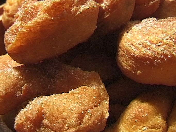 Forró zsiradékban mindkét oldalát aranyló barnára sütjük, tálban kicsit hűlni hagyjuk, végül porcukorral megszórjuk.