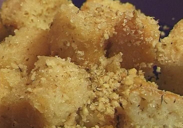 A kihűlt tésztákat kockákra vágjuk, és szűrőkanállal először megmerítjük a forró vízben, majd lecsurgatjuk, és kissé átpirítjuk a zsírban. Cukros diót szórunk rá, de túrósan, mákosan is készíthetjük.
