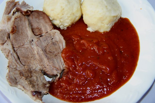 Közben egy nagyobb krumplit megtisztítunk, nagylyukú reszelőn lereszeljük. Ráütjük a tojásokat, csipetnyi sót szórunk rá, elkeverjük, majd kanalanként eldolgozzuk benne a lisztet is. Keményebb anyagot készítünk, mint a nokedli, hogy ne essen szét főzés közben.