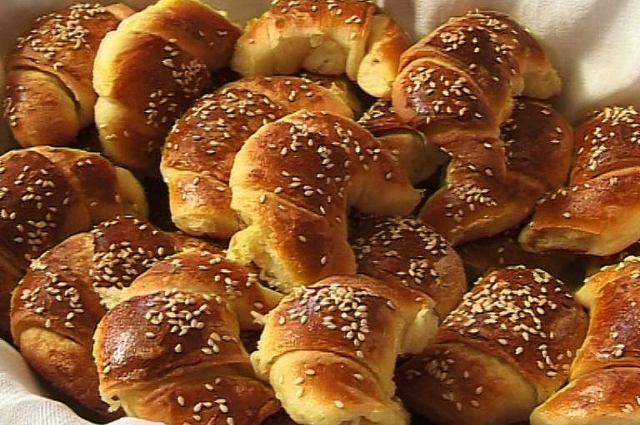 A megkelt tésztából egy zsemlényi gombócot kiszakítunk, ezt olajjal alaposan átkent deszkán kézzel kerekre széthúzzuk. Egyik felébe gazdagon teszünk a fűszeres húsból, a másikat ráhajtjuk, majd a széleit gondosan összenyomkodva lezárjuk, nehogy kifolyjon a töltelék.