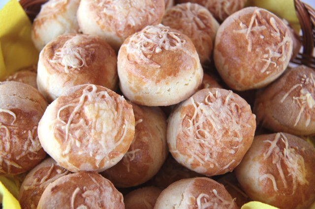 Lisztezett deszkán ellapítjuk, és öt percet állni hagyjuk. Ezután két centi vastagra kisodorjuk, majd pogácsaszaggatóval kiszúrjuk. Sütőpapíros tepsibe helyezzük, átkenjük felvert tojással, és megszórjuk reszelt sajttal. Fél óráig kelni hagyjuk, és előmelegített sütőben szép színesre sütjük.