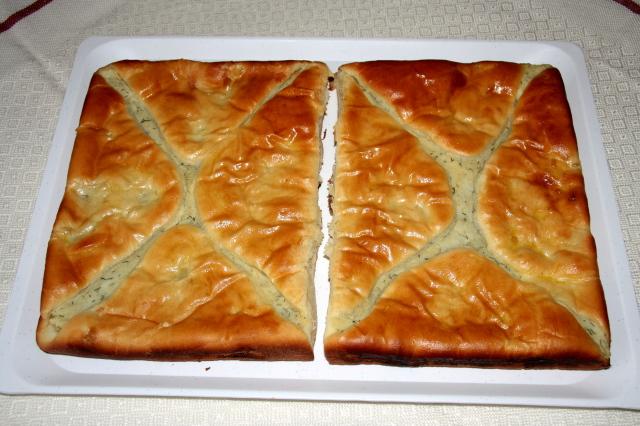 Hozzávalók: 50 dkg liszt, 2 tojás, 2 dl tej, 2 evőkanál cukor, 2,5 dkg élesztő, csipetnyi só, 1 evőkanál zsír. A töltelékhez: 1 kg krumpli, 1 nagy csokor kapor, 2 kávéskanál só, 3 evőkanál cukor, 1 vaníliás cukor, 1 evőkanál tejföl, 1,5 dl tej. A tepsihez és a kisült tésztára zsír, a lángos tetejére 1 tojás.