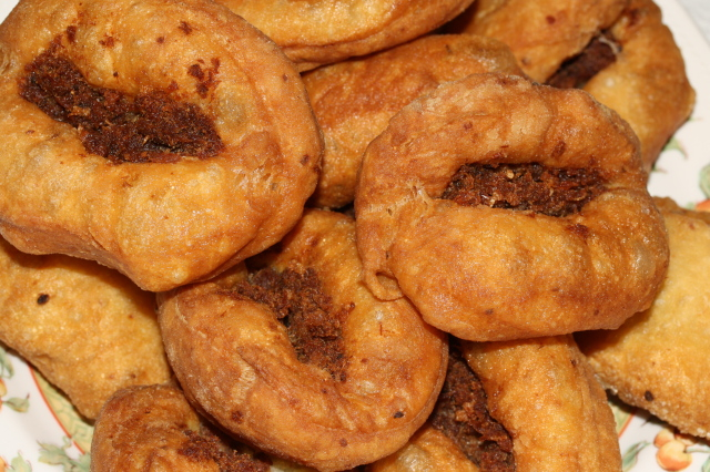 Hozzávalók: 1 kg liszt, 2 tojás, 5 dkg élesztő, 30 dkg főtt, áttört krumpli, 5 dl tej, 1 kanál cukor, 1 teáskanál só. A töltelékhez: 50 dkg füstölt sonka (tarja), 2 tojás, 1 kávéskanál őrölt feketebors, 1 teáskanál őrölt paprika. A sütéshez étolaj.