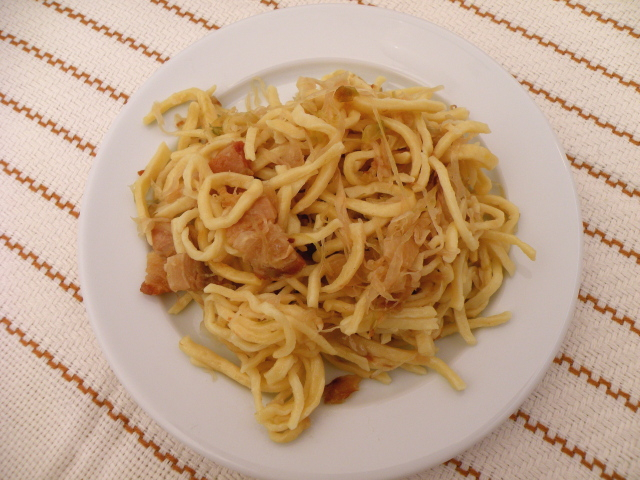 Hozzávalók: 50 dkg liszt, 50 dkg vágott savanyú káposzta, 1 kis fej vöröshagyma, 1 tojás, 15 dkg füstölt szalonna, só.