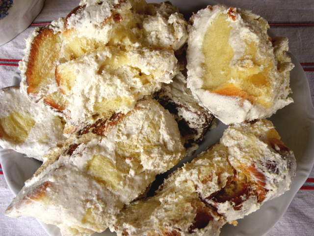 Amikor kisült a kalács kiborítjuk a tepsiből, szétszedjük, és a fűszeres mártókában átforgatjuk. Tálba tesszük, lefedjük, és 10 percig állni hagyjuk, hogy átgyengüljön.