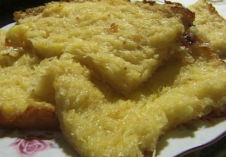 A sütő tepsit (vagy két normál tepsit) kizsírozunk, megszórjuk liszttel, beleöntjük a masszát. Tetejét olvasztott zsírral meglocsoljuk, és előmelegített sütőben sütjük.