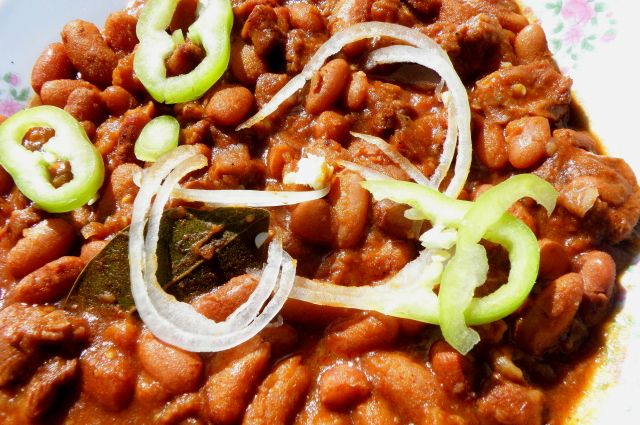 A húsokat felszeleteljük, a faggyút leszedjük róla, beirdaljuk, és fokhagymás tejben legalább 15 órát pácoljuk. Lecsepegtetjük, és fűszerezzük. A bevágásokba bőségesen nyomkodunk fokhagyma darabkákat, majd fűszerezzük flekken-keverékkel, őrölt borssal, és őrölt köménnyel. Gyengén átsózzuk, majd kizsírozott, vagy étolajjal átkent tepsibe tesszük, szépen egymás mellé a szelet húsokat. A szalonnát feldaraboljuk, és rárakjuk. Minden szeletre teszünk egy karika paradicsomot is. Fóliával letakarjuk, és sütőben kb. másfél órát sütjük.