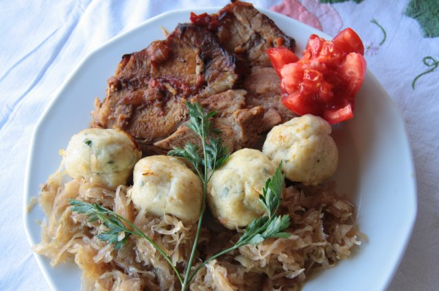 Hozzávalók: 1 kg fejes káposzta, 1 közepes vöröshagyma, 3 gerezd fokhagyma, 1 dkg őrölt paprika, só, 1 kávéskanál őrölt feketebors, 12 dkg füstölt szalonna, 1 liter füstölt alaplé (vagy víz), 1 evőkanál zsír, 2 evőkanál liszt. Fasírozott: 40 dkg darált sertéslapocka, 1 zsemle, 1 kis fej vöröshagyma, 5 dkg zsír, 8 dkg zsemlemorzsa, 2 tojás, 2 teáskanál só, 1 teáskanál őrölt feketebors, 1 dkg őrölt paprika. A sütéshez 2 púpos evőkanál zsír.
