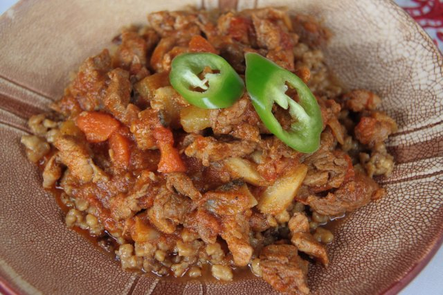 Zöldséges sertésragu tarhonyával