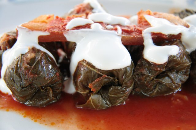 Hozzávalók: 25 dkg rizs, 1 kg darált sertéshús, 3 evőkanál só, 1 teáskanál őrölt feketebors, 30 dkg füstölt szalonna, 2 vöröshagyma, 1 fej fokhagyma, 7 dl paradicsomlé, 1 dl ecet, tormalevél, másfél evőkanál őrölt paprika.