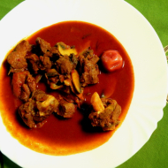 Tejfölös-gombás szarvas pörkölt bográcsban