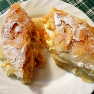 Göngyölt sertéshús almával töltve, krumplis házi rétessel