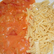 Csíktészta habart lecsóval
