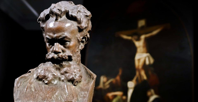 A háttérben a hat méter magas, Siratóasszonyok a keresztfánál című festmény Fotó: Munkácsy Mihály Múzeum/Facebook[/caption]