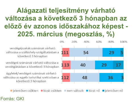 A következő három hónapban az előző év azonos időszakához képest a szállásadók 34%-a növekedést, míg 12%-uk visszaesést vár a vendégéjszakák számában. A vendéglátásban működők közül 46% vár vendégforgalom növekedést az előző év azonos időszakához képest, 14%-uk pedig visszaesést vetít előre. Az egyéb turisztikai szektorban működők