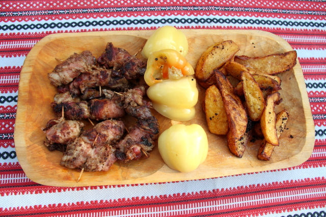 Szalonnás máj tárcsán, zsírjában sült burgonyával