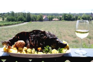 Petrezselymes burgonyát tálalunk hozzá. A krumplit megtisztítjuk, felkockázzuk, és forró olajban kisütjük. Sózzuk, és petrezselyem zölddel meghintjük. A köretet ágyként tálaljuk a kisült pontyunkhoz, és fehérbort kínálunk mellé.