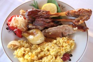 Hozzávalók: 1,5 kg báránycomb, 6 gerezd fokhagyma, zsálya, rozmaring. 1 citrom, 3 vöröshagyma, 2 evőkanál olívaolaj, 1 teáskanál őrölt bors. A pácléhez: 1 teáskanál só, 1 teáskanál őrölt bors, 3 evőkanál olívaolaj. A köleskásához: 25 dkg köles, fél liter húslé, 2 sárgarépa, 2 petrezselyem, 1 krumpli, 1 vöröshagyma, 1 evőkanál sertészsír, 1 teáskanál só, 1 kávéskanál őrölt bors.