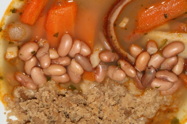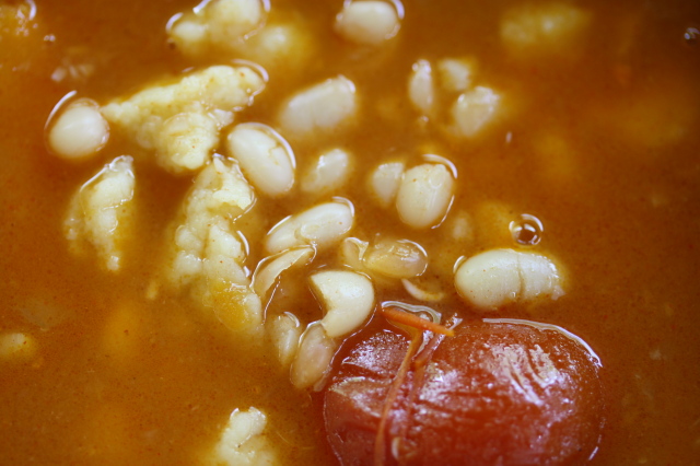 Közben csipetkét készítünk. A tojásokhoz annyi lisztet teszünk, amennyit felvesz. Jól kidolgozzuk, kicsit pihentetjük, majd megnyújtjuk, csíkokra vágjuk, és apró gombócokat formázunk belőle.